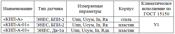 В классе устройств КИП-А разработана серия модификаций, обладающих различными эксплуатационными характеристиками в зависимости требований заказчика.