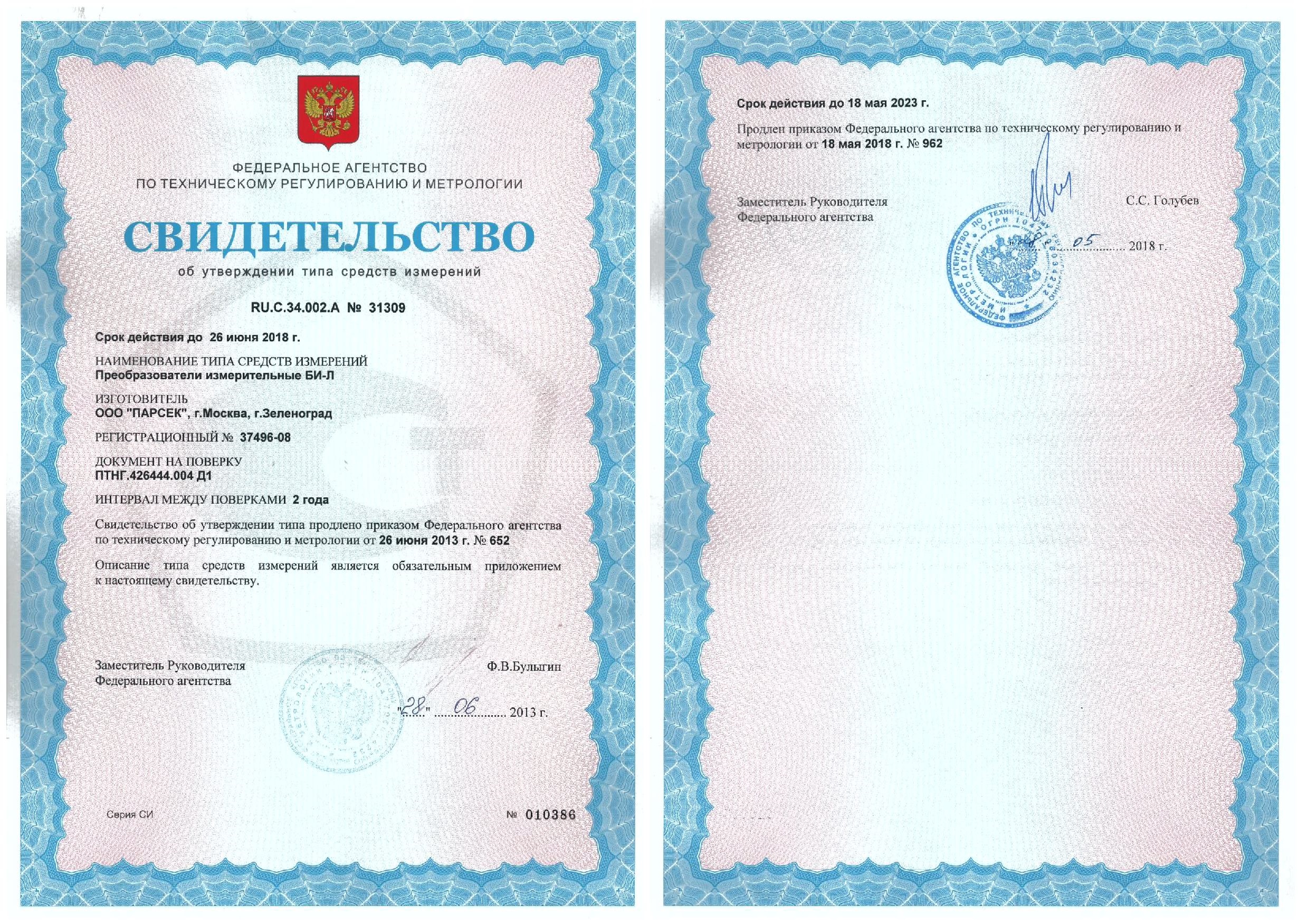 18.05.2018 Продление свидетельства утверждения типа «БИ-Л»