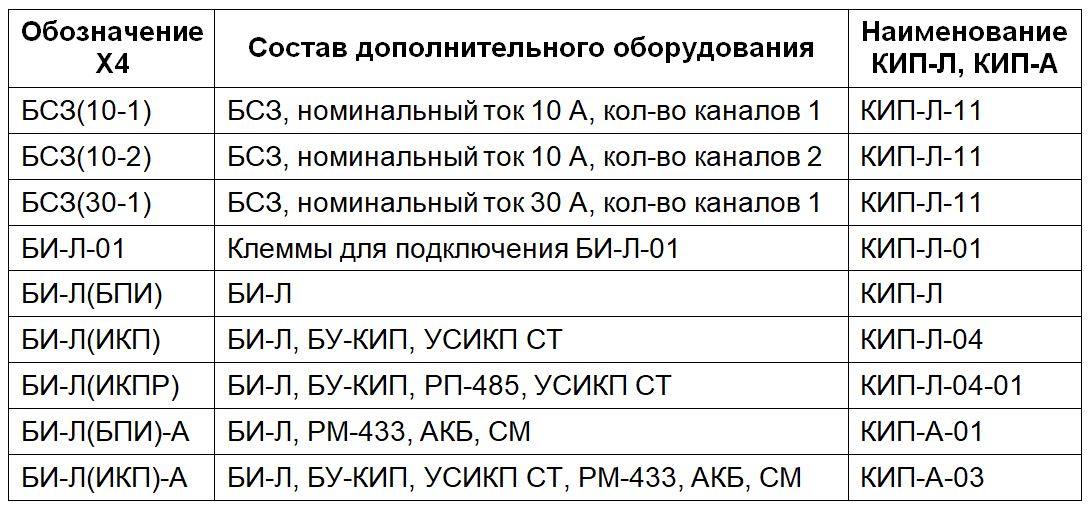 Х4 – Обозначение наличия дополнительного оборудования по таблице 2