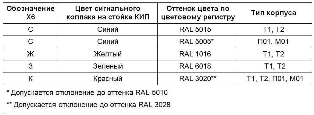 Х6 – Обозначение цвета сигнального колпака или крышки-плаката по таблице 1